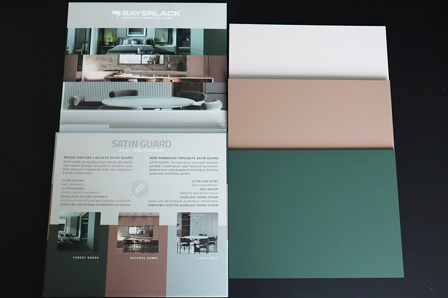 La ricerca Sayerlack, attraverso diverse soluzioni tecnologiche, è in grado di conferire elevata resistenza e durabilità alla superficie extra-opaca su legno naturale o laccato. Per esaltare e proteggere gli arredi Sayerlack ha ideato la gamma SATIN GUARD che comprende finiture bicomponenti – trasparenti e pigmentate, fondi-finitura e converter, anche ad essiccazione UV – tutti accomunati da basso glossaggio (massimo 5 gloss) e da elevatissime prestazioni.